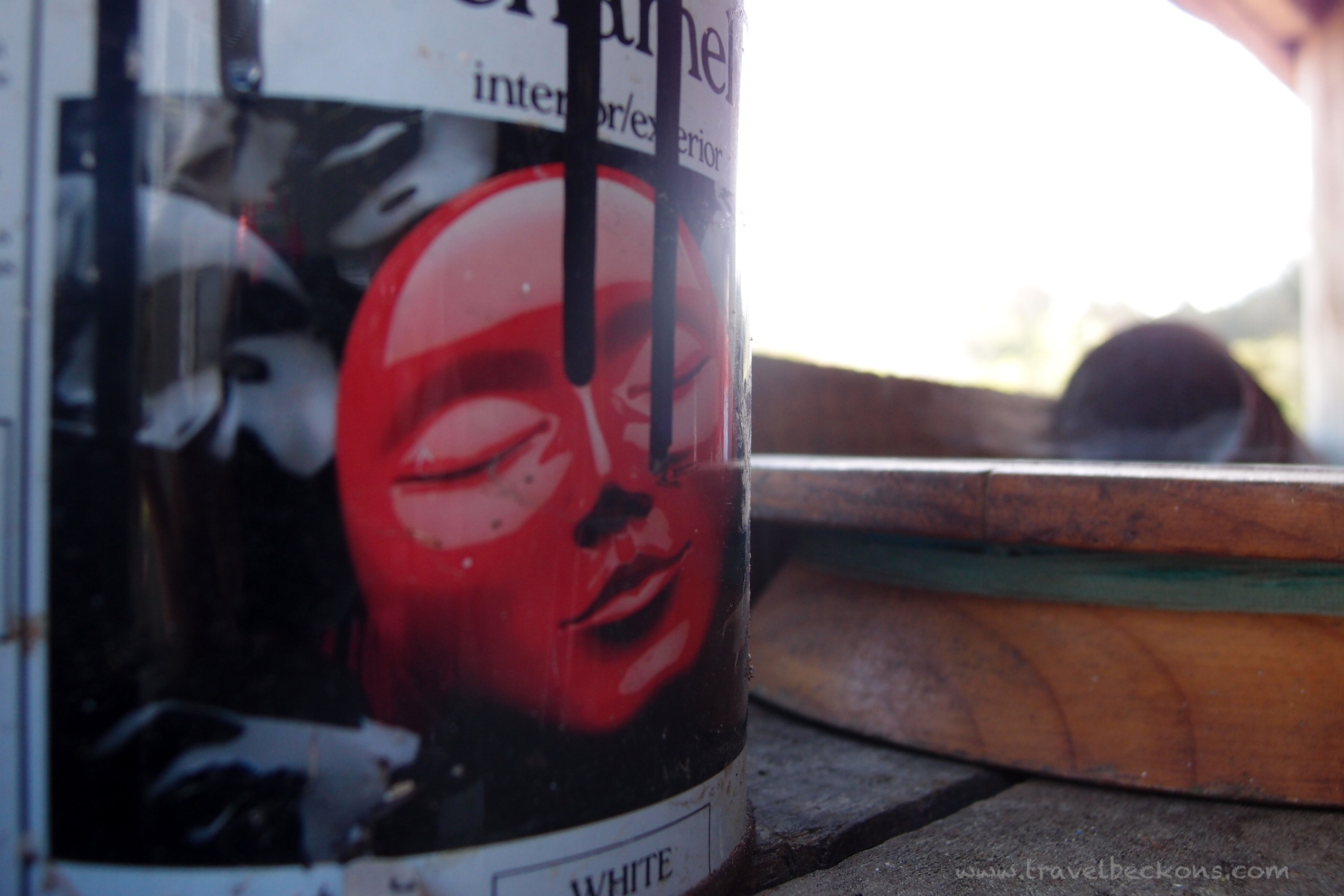 Intrigued. Empty can found in the late Blind Man’s house that was bought by my host.