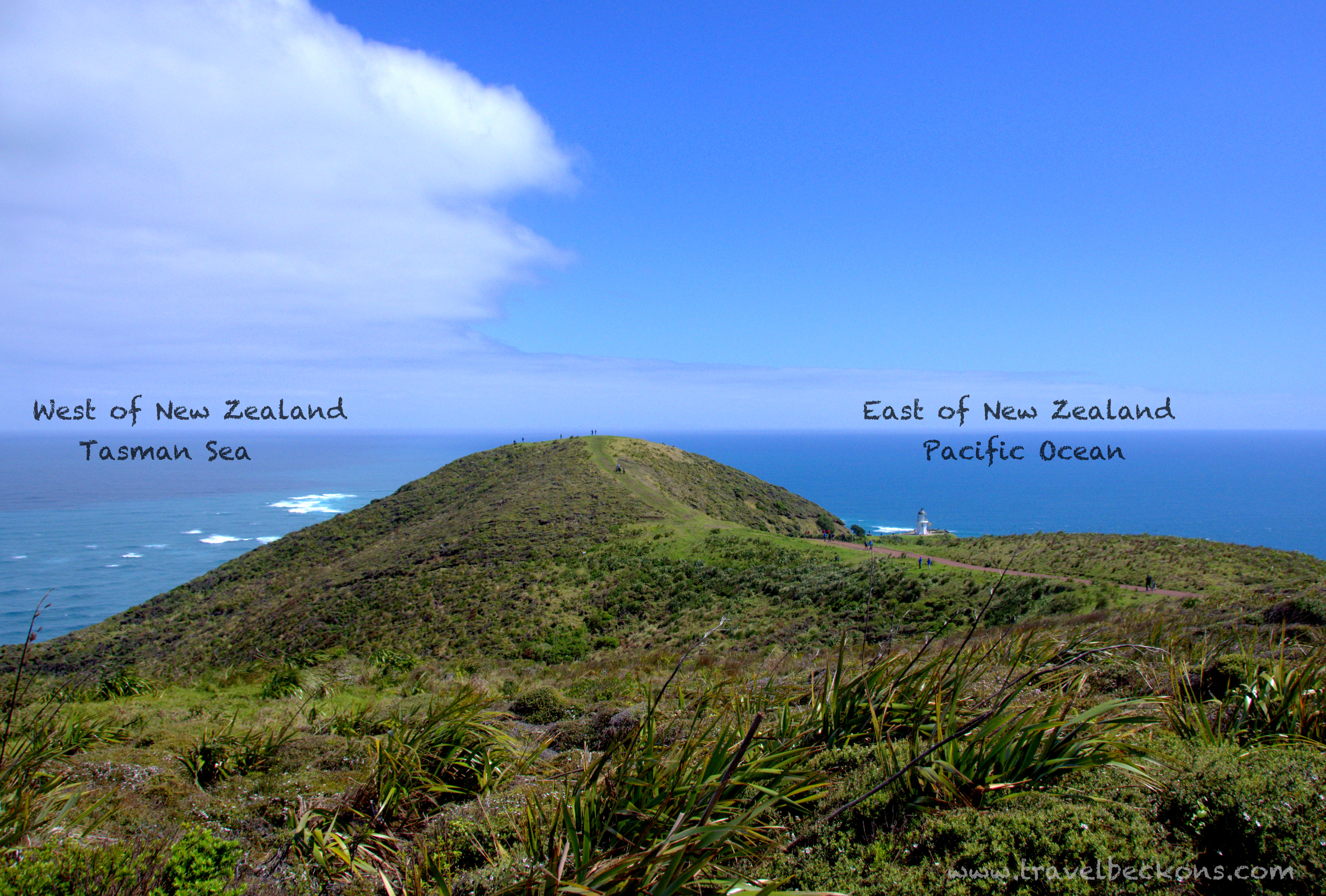 On the east lies the Pacific Ocean that presents a tranquil blue that dazzles, not unlike jewels in the sea. It is almost blinding to see such beauty. Walking on, you are bound to feel the strong breeze of the West. The Tasman Sea lies on this side and what a difference it makes. Whilst the Pacific Ocean remains still as it can be, crashing waves and constant motions define my impression of the Tasman Sea.