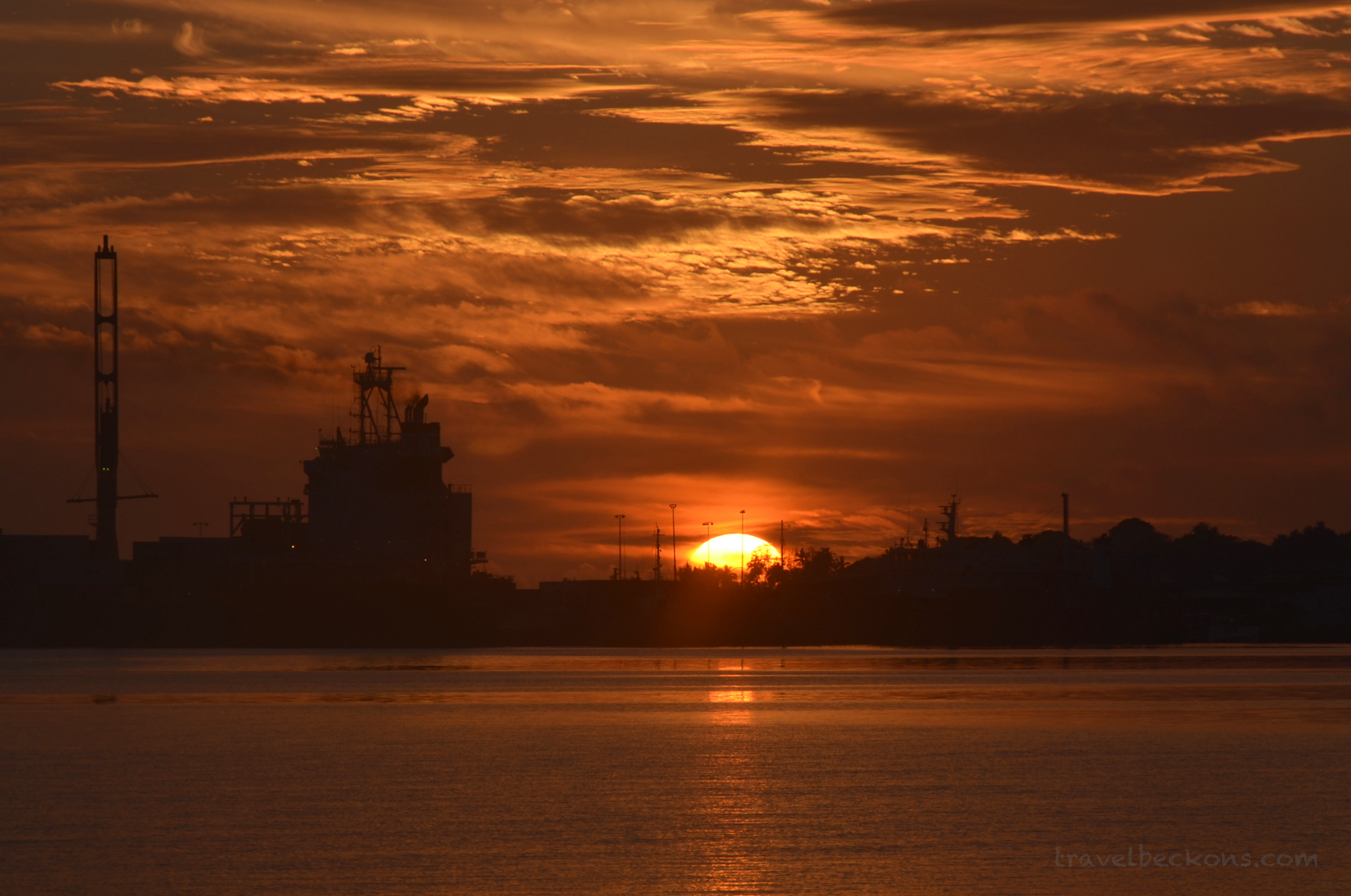 Beautiful sunrise in Tonga at Vuna Wharf, Nukualofa