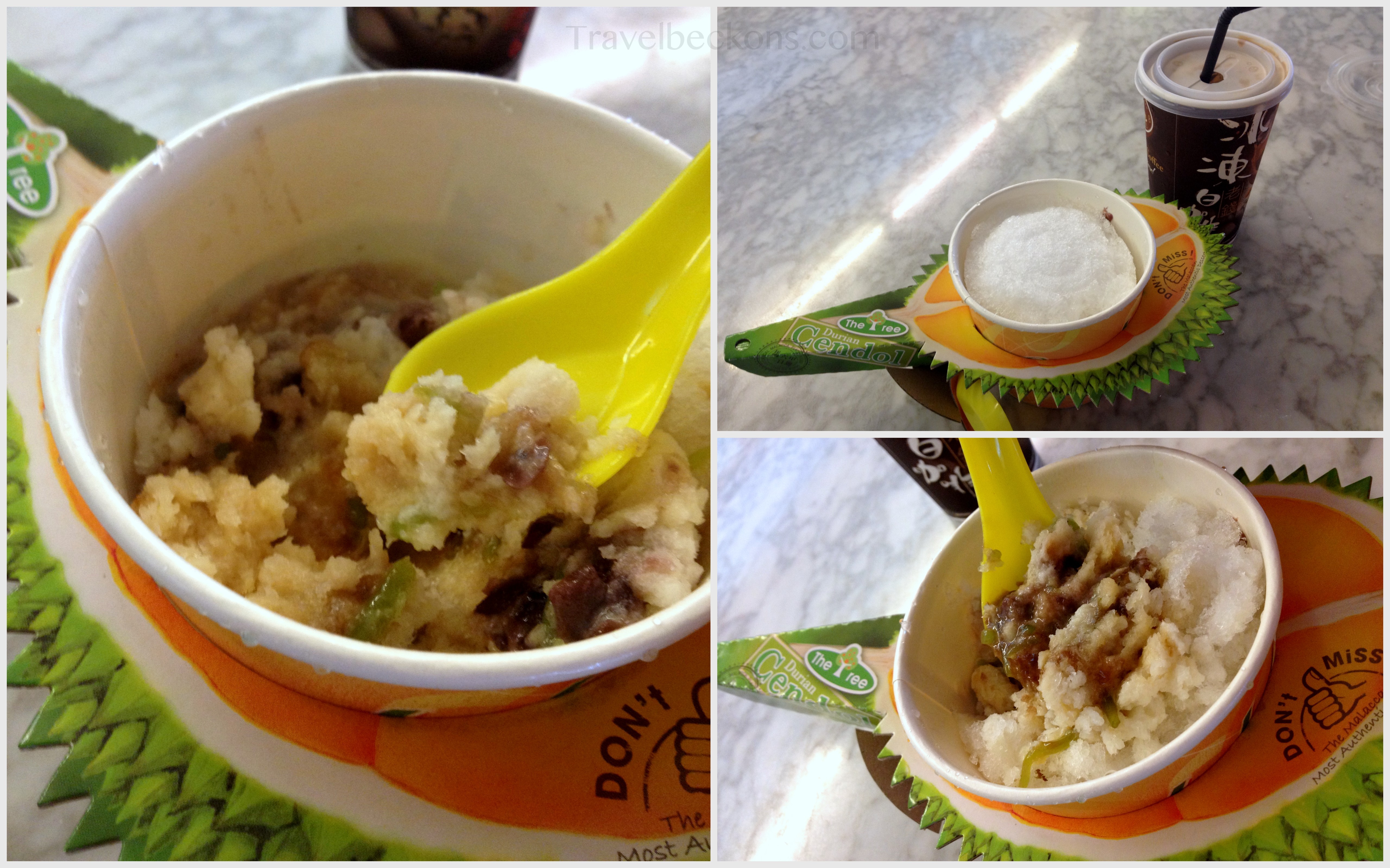 This is a Peranakan dessert/snack made of sweet potato and glutinous rice flour with palm sugar (Gula Melaka) filling and covered with fresh coconut shavings. There’s a stall within Jonker Walk (near to the restaurant that sells Satay Celup) that serves fresh Ondeh Ondeh. They make it on the spot! However, we forgot to take down the address in our greedy excitement to eat.