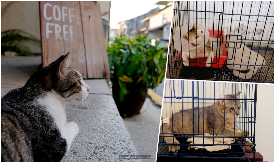 Upon entering Alley No. 5, we were greeted by an empty space with several cages of cats and a strong stench. Many of these cats looked injured, and we soon found out that they were stray cats that were taken in by the kind owner who housed and treated their wounds (surprise #2). *heart melts*